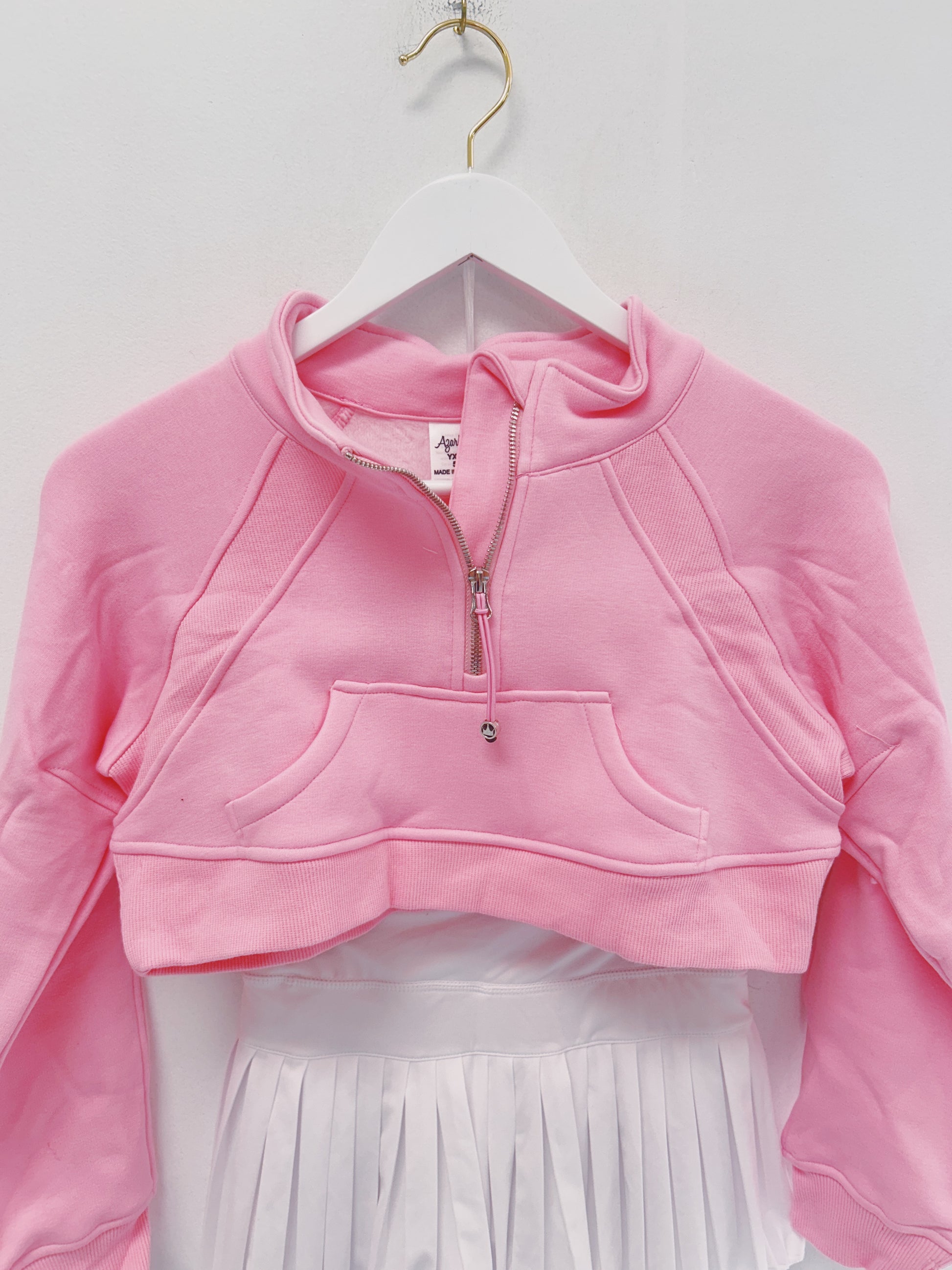 Azarhia Cropped 1/4 Zip Sweatshirt- Light Pink
