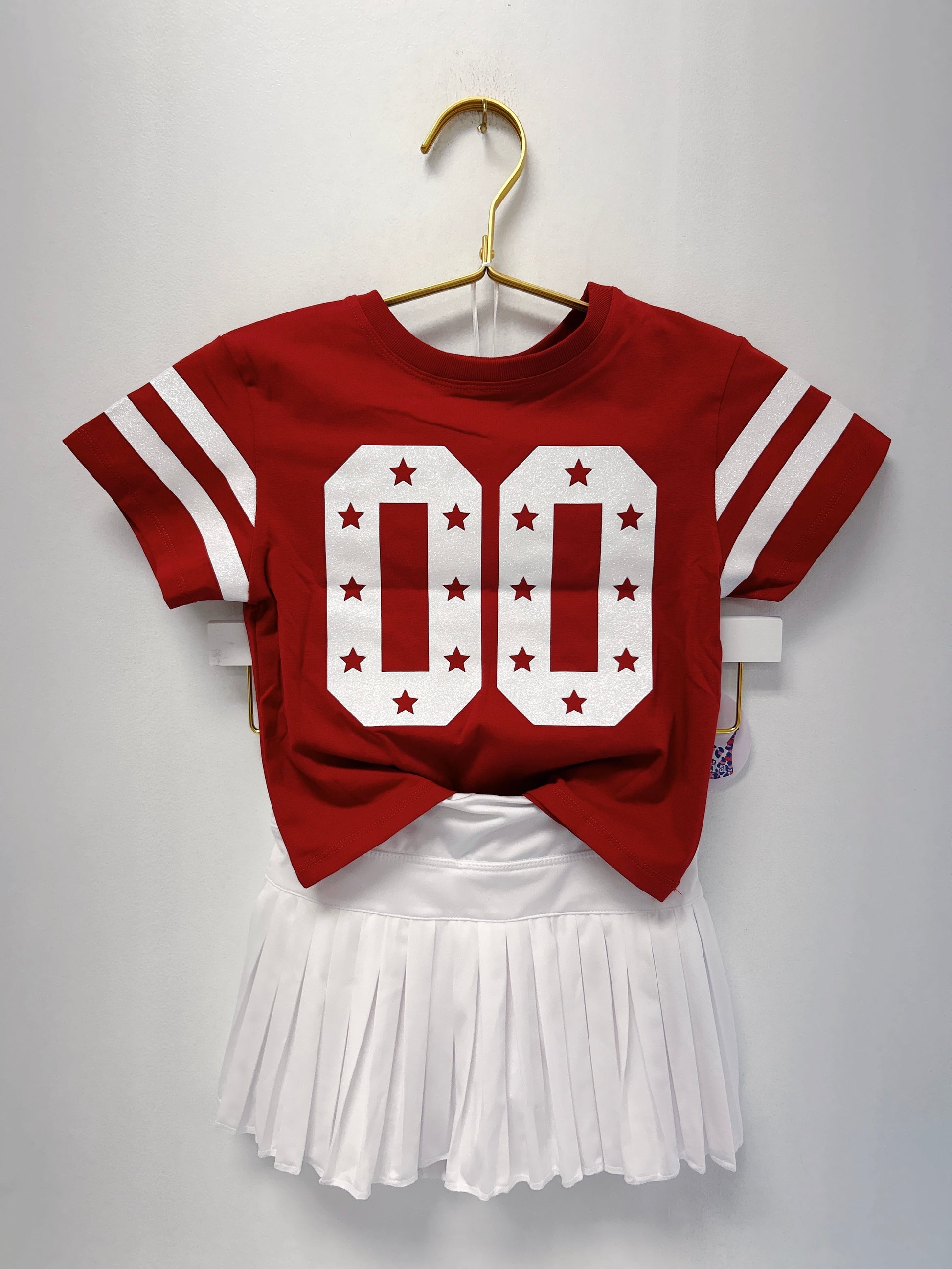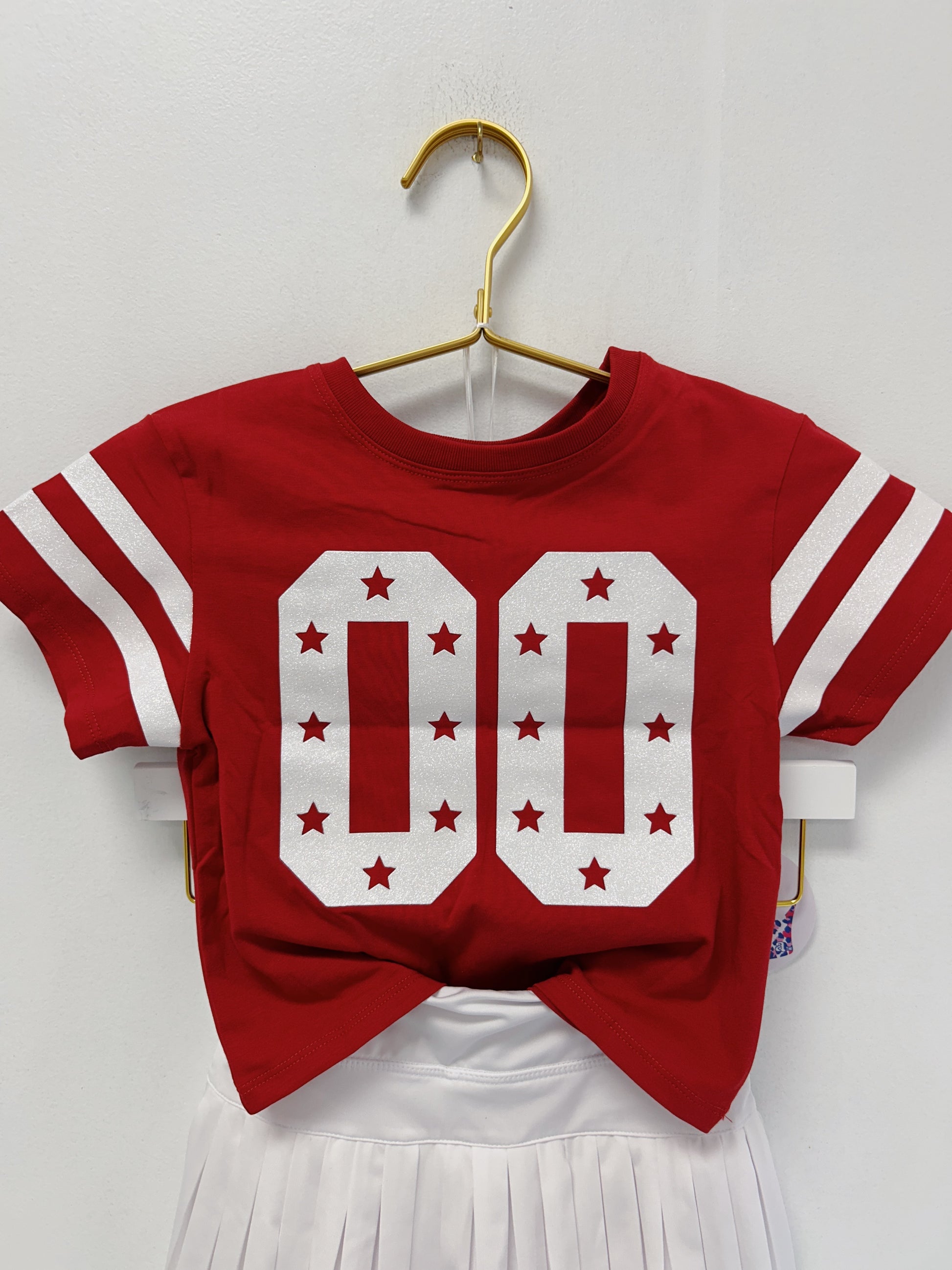 Azarhia Glitter 00 Stars Boxy Tee- Crimson