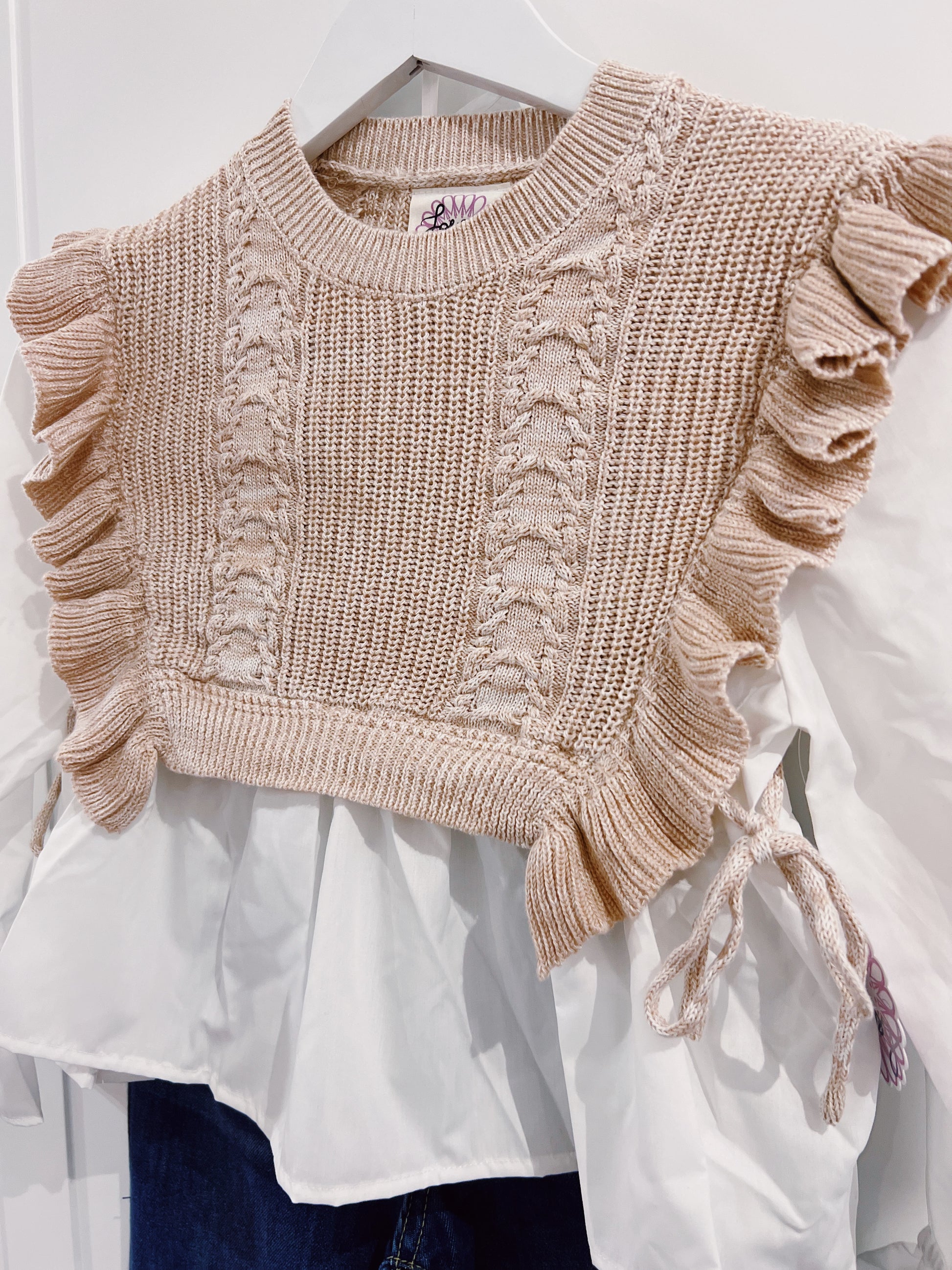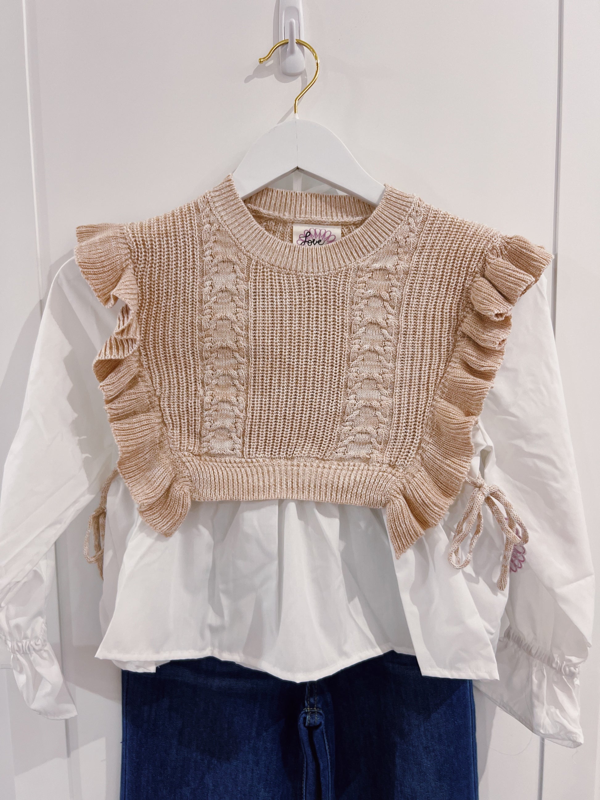 Love Daisy Taupe Faux Vest with Poplin Sleeve Top