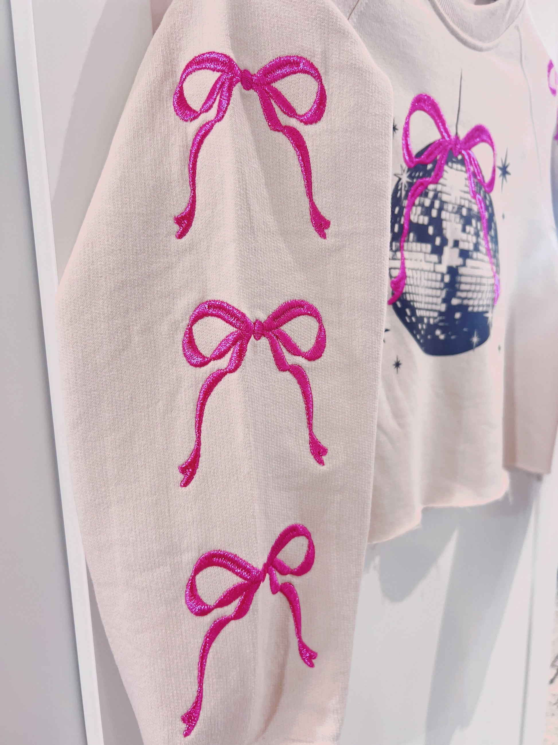 Paper Flower Embroidered Bows & Disco Ball Sweatshirt