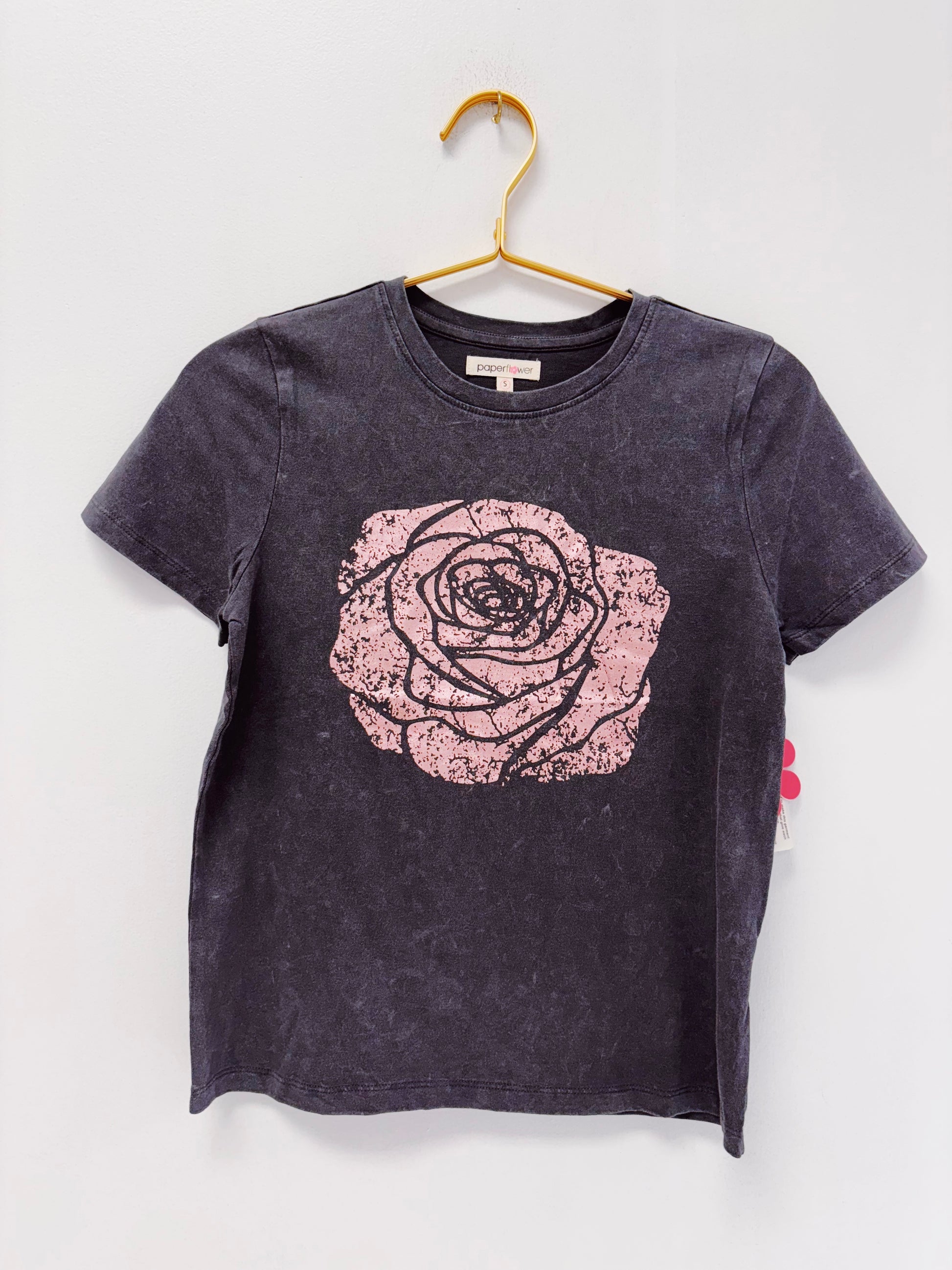 Paper Flower Gray Distressed Rose Acid Wash Tee